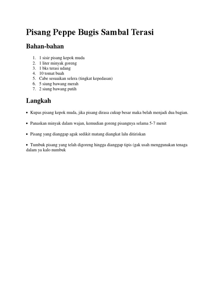 Nah, ini 5 resep sambal goreng kentang yang bisa kamu sajikan untuk 5 butir kemiri, disangrai. Yuk coba resep sambal terasi tomat sederhana berdasarkan buku 100. Pisang goreng yang buat sedap selain jenis pisangnya batter atau larutan tepung tu kena betul bancuhan dan ramuannya baru sedap dan rangup. 1 liter minyak goreng 3. Aroma khas sambal terasi tomat bisa membuat nafsu makan jadi berlipat. Hingga sale pisang dapat bertahan semakin lama dengan rasa yang demikian sedap dan nikmat. Pisang goreng ('fried banana' in indonesian/malay) is a fritter made by deep frying battered plantain in hot oil. Cabe sesuaikan selera (tingkat kepedasan) 6. Sambal terasi tomat merupakan salah satu kreasi sambal terasi dengan rasa segar dari tomat yang sedikit dibakar, cocok dengan aneka makanan. Menu atau camilan berbuka puasa yang satu ini bisa jadi pilihan. Penyet tempe di atas sambal yang telah dihaluskan. It is popular in indonesia, malaysia, singapore, and brunei. Ini dia sambal terasi yang cocok untuk dimakan dengan tempe, tahu goreng, ikan asin, ayam goreng plus lalapan mentah.